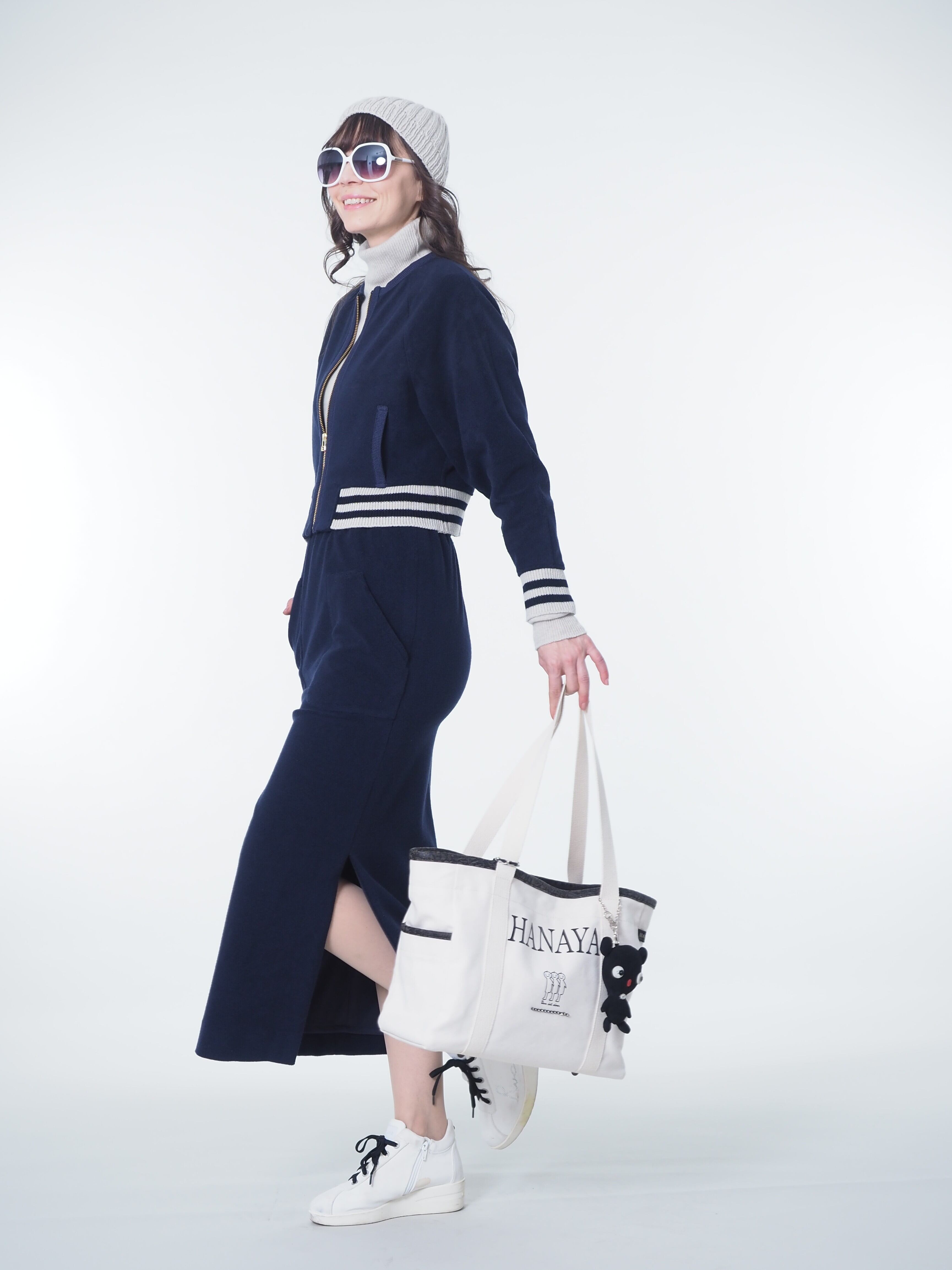 コットンとポリエステル素材のショートブルゾンは、柔らかなコットン素材で作られたとてもラフなブルゾンです。後ろのやさしいくまちゃんのモチーフはカシミヤの糸で編まれたオリジナルです。シンプルながら洗練されたデザインを演出し、日常使いから特別な日まで幅広く活躍します。